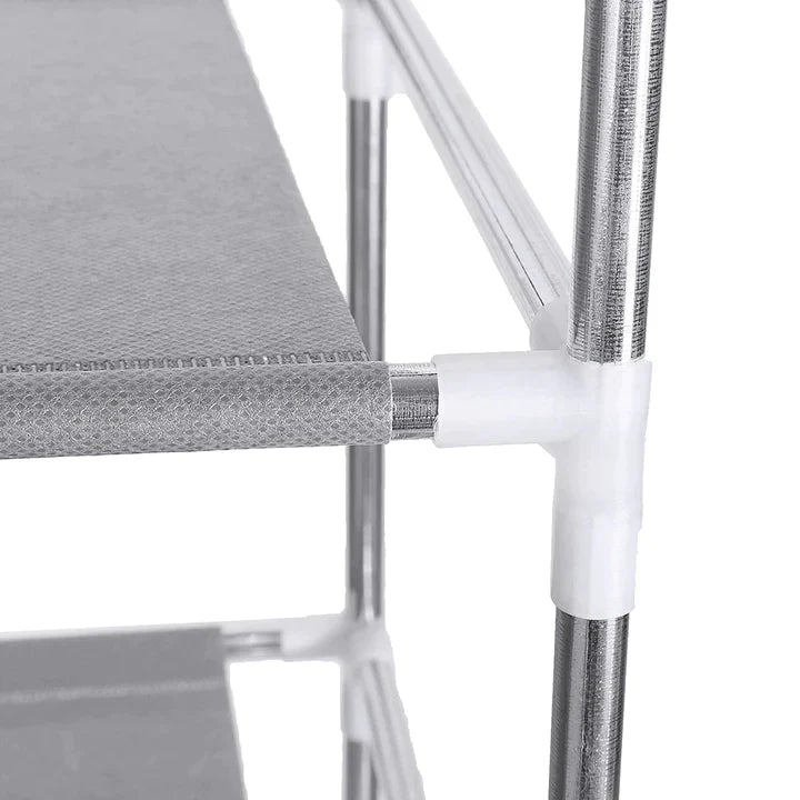 Ovaj stalak za cipele je napravljen od vodootpornih, izdržljivih polica od tkanine, čeličnih cevi i jakih plastičnih konektora za izuzetnu pouzdanost i izdržljivost, pa je savršeno rešenje u svakodnevnoj organizaciji.
