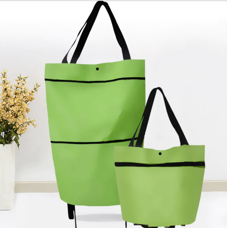 Ova pametna torba lako se pretvara u kolica kada vam zatreba. Nosite je preko ramena ili jednostavno rasklopite i koristite kao kolica na točkiće – idealno rešenje za kupovinu bez napora.