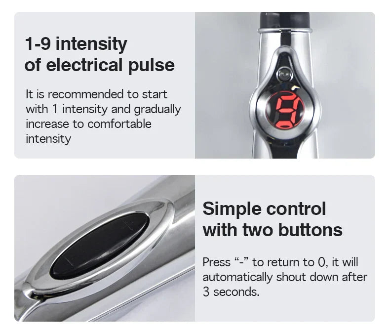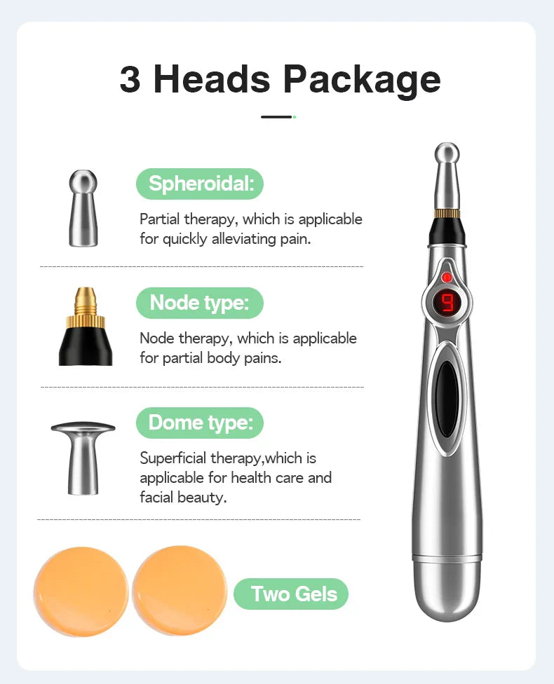 Ova 3 u 1 akupunkturna olovka koristi električne impulse kako bi stimulisala određene akupunkturne tačke na telu. Deluje na opuštanje mišića, poboljšanje cirkulacije, jačanje imunog sistema i smanjenje umora, pružajući trenutno olakšanje i osećaj blagostanja.