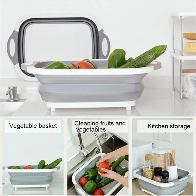 Opis: Ova multifunkcionalna daska za sečenje je idealna za kampovanje i svakodnevnu upotrebu u kuhinji. Ona kombinuje dasku za sečenje sa koritom za odlaganje i cediljkom za voće i povrće, pružajući vam sve potrebno za brzu i efikasnu pripremu hrane.