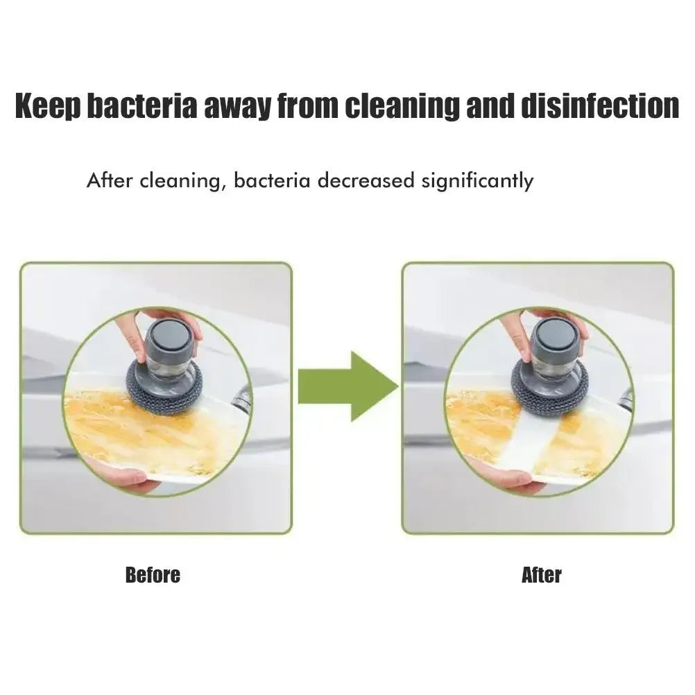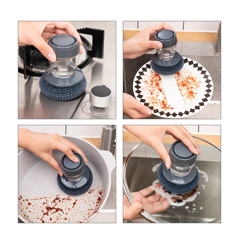 Ova četka za čišćenje sudova u kuhinji opremljena je mehanizmom za automatsko dodavanje tečnog sapuna, čineći čišćenje posuđa jednostavnim i efikasnim.