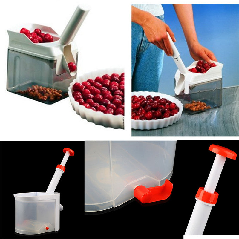 Svim ljubiteljima višanja i trešanja predstavljamo ovu spravicu za automatsko vađenje koštica iz višanja i trešanja! Spravica za vađenje koštica je najbrži, najefikasniji i najbezbedniji način uklanjanja koštica iz višanja i trešanja. Dovoljno je da ubacite trešnje ili višnje, pritisnete ručicu i u deliću sekunde ih očistite od koštica koje se smeštaju u posebnu posudu na dnu aparata. Spravica za vađenje koštica je idealna sprava za Vas, ako želite da ih zaledite ili pravite slatko, kompot ili sok od trešnje ili višnje.