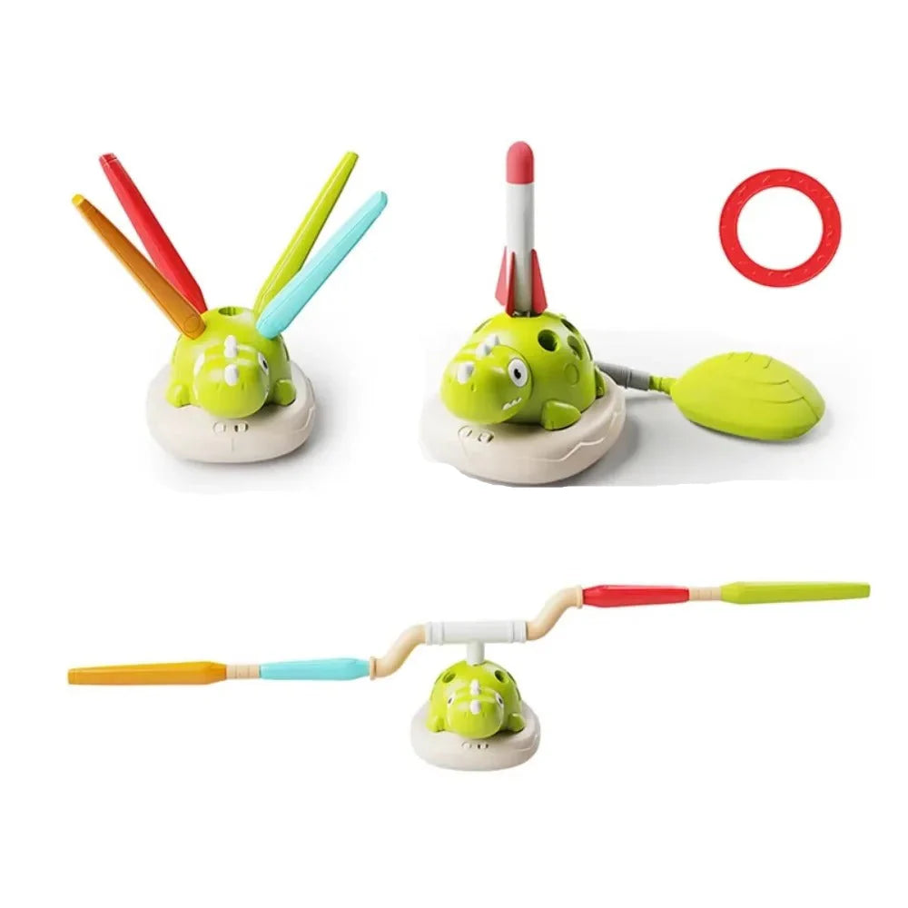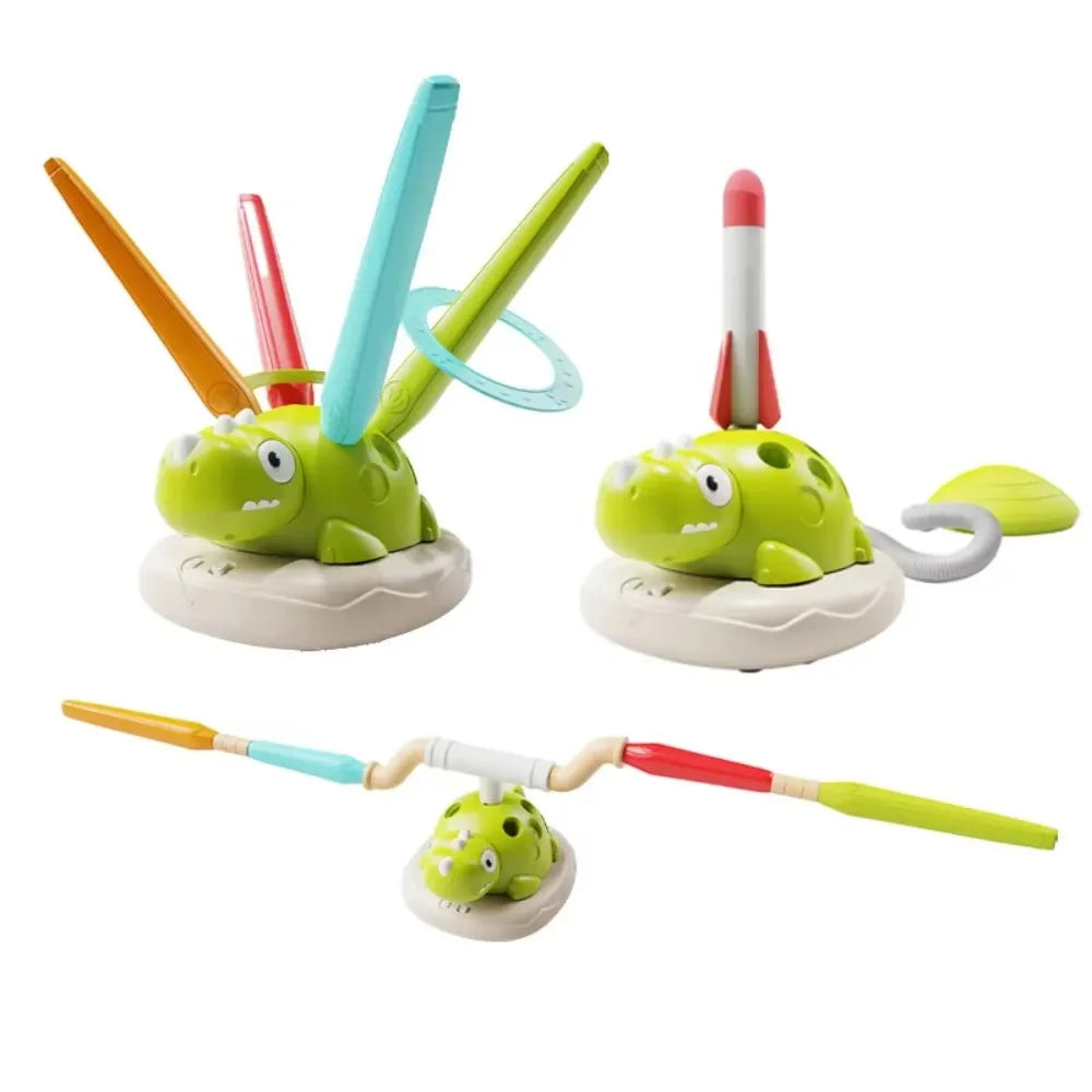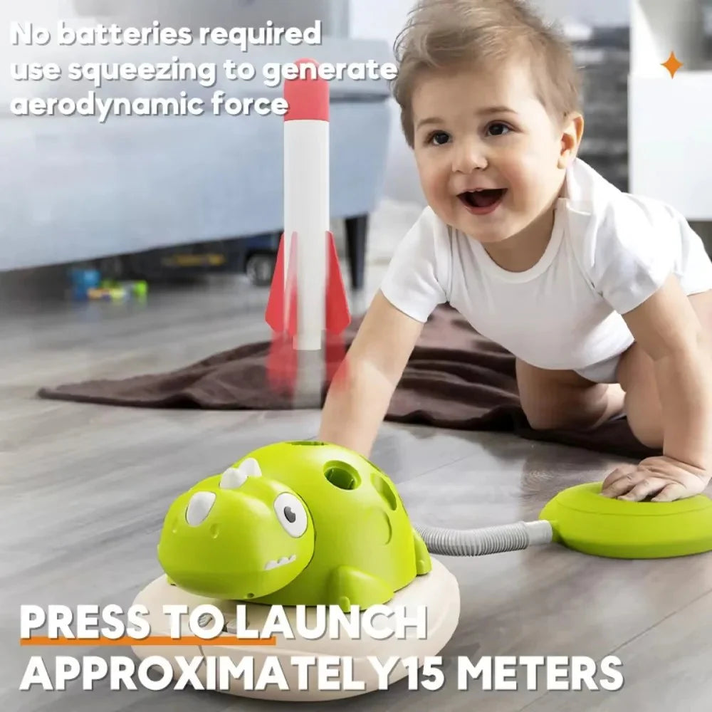 Pritiskom na pumpu dinosaurus postaje lansirna platforma za meke rakete. Deca vežbaju snagu, koordinaciju pokreta i upoznaju osnovne principe uzroka i posledice kroz bezbednu igru.