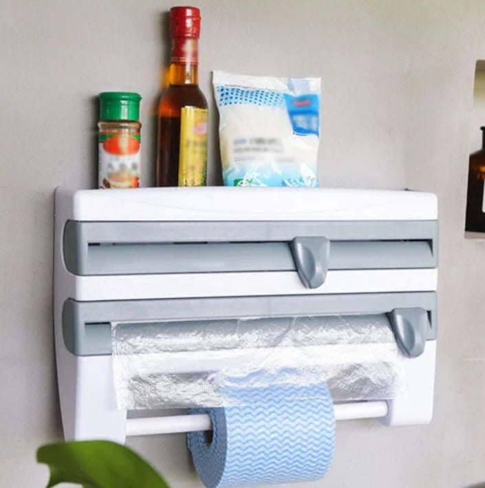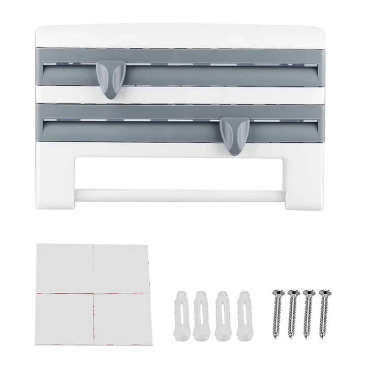 Ovaj 3 u 1 držač ima ukupno tri pregrade - prve dve mogu da se koriste za providne i aluminijum folije, kao i za papir za pečenje. Poslednja pregrada je podesive širine, i koristi se za ubruse.