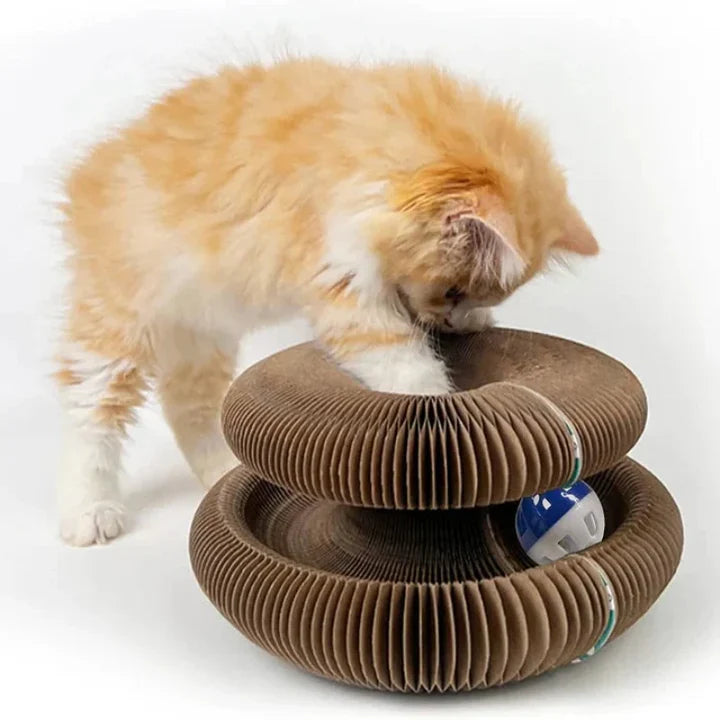 Može se presaviti u oblik kosti, presaviti u krevetac za spavanje ili po volji je savijte u kružni oblik i ubacite lopticu (dolazi u paketu). Dizajn promenljivog oblika dobro se uklapa u većinu dizajna kućnog dekora. Multifunkcionalna igračka za mačke kombinuje više oblika za još više razonode!