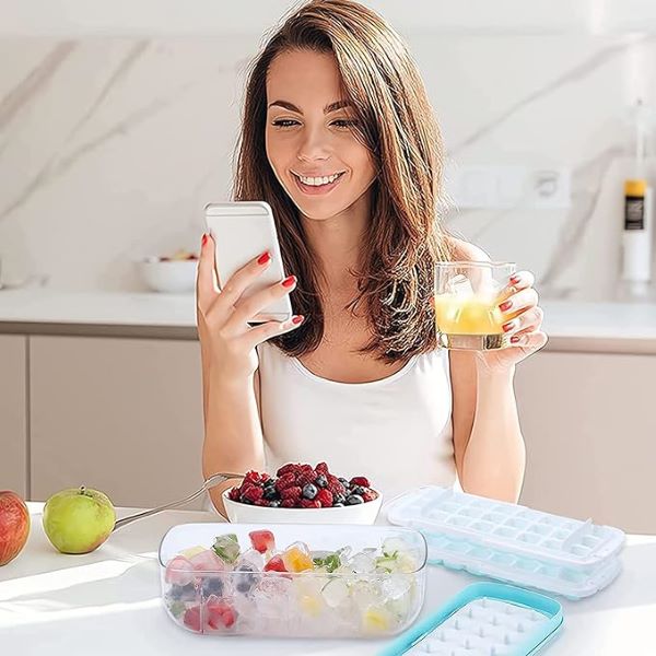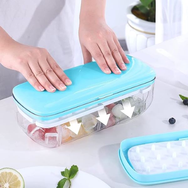 Kutija dolazi sa praktičnim poklopcem koji sprečava prosipanje vode i štiti led od neprijatnih mirisa iz zamrzivača. Poklopac takođe omogućava slaganje više kutija jedna na drugu radi uštede prostora.