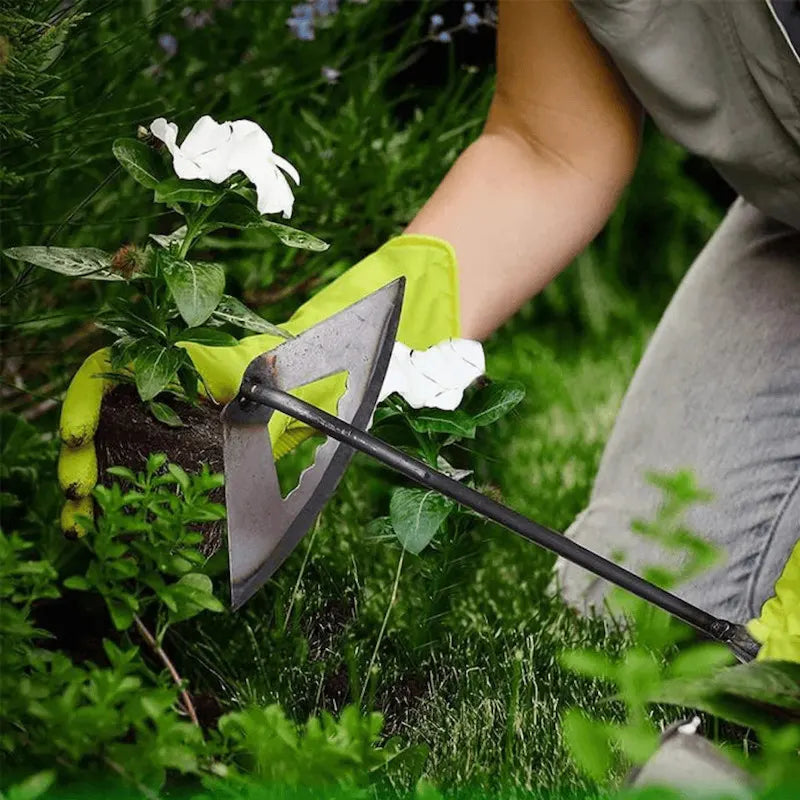 Svestran alat koji se može koristiti za svakodnevne radove u vrtu poput uklanjanja korova, kopanja, sađenja povrća i slično. Seče korov tik ispod površine tla, laganim udarcima sitni zemlju i precizno okopava tlo oko sadnica.