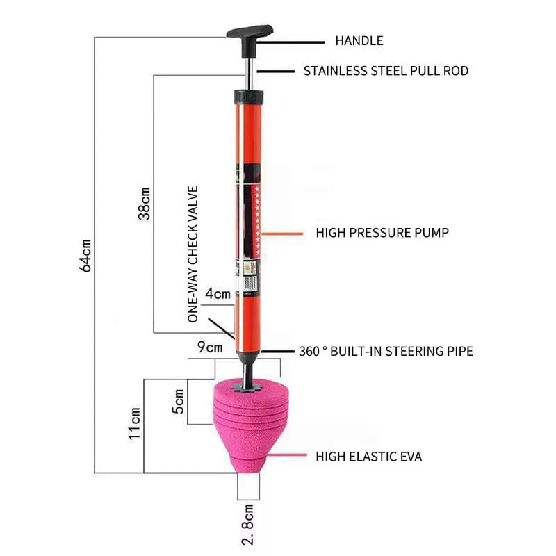 Ovaj visokopritisni odčepljivač koristi silu komprimovanog vazduha da brzo i lako ukloni blokade iz WC šolje, lavaboa, sudopere ili odvoda. Samo pritisnite ručku i snažan mlaz vazduha probija začepljenje za nekoliko sekundi.