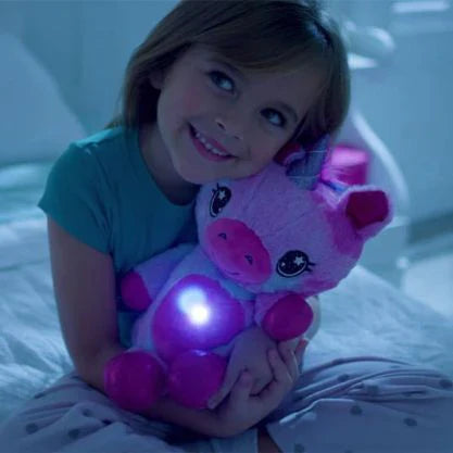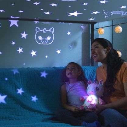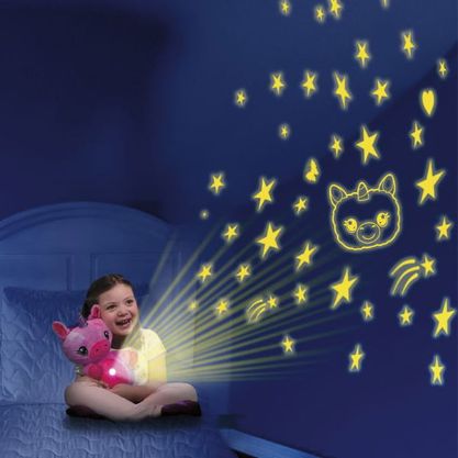 Oterajte strah od mraka s ovom slatkom plišanom životinjom koju vaše dete može zagrliti i sa njom projektovati opuštajuće slike u sobi.