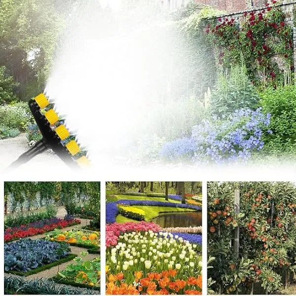 Alat ima prskalicu s tri cevi koje raspršuju vodu po većoj površini i stvaraju finu maglu koja optimalno navodnjava biljke. Količinu i način prskanja možete podesiti prema potrebama biljaka.