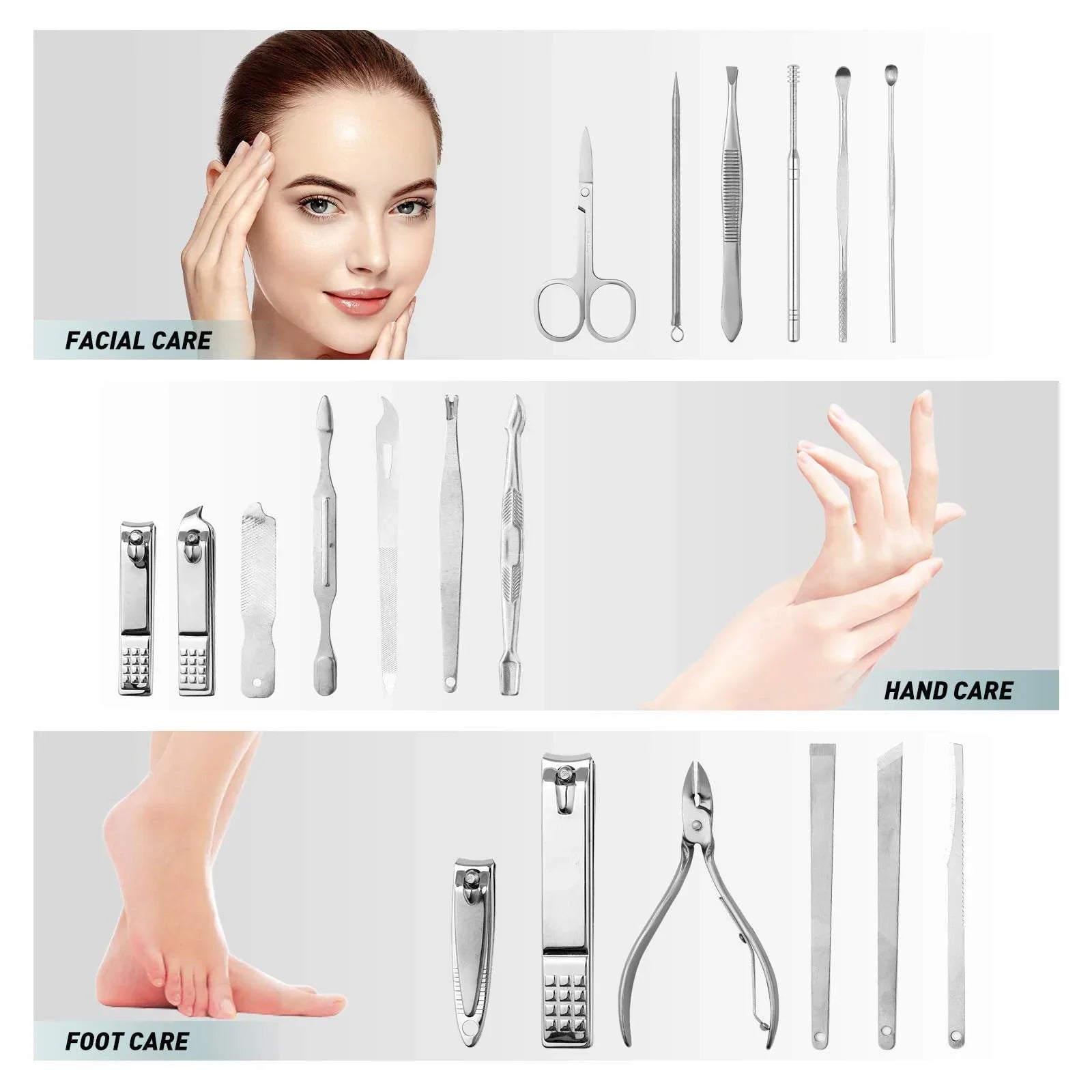 Ovaj set donosi više od običnih alata – on vam omogućava da pretvorite negu noktiju u umetnost. Uz raznovrsne precizne instrumente, možete oblikovati, čistiti i negovati nokte do savršenstva, izražavajući svoj jedinstveni stil i eleganciju.