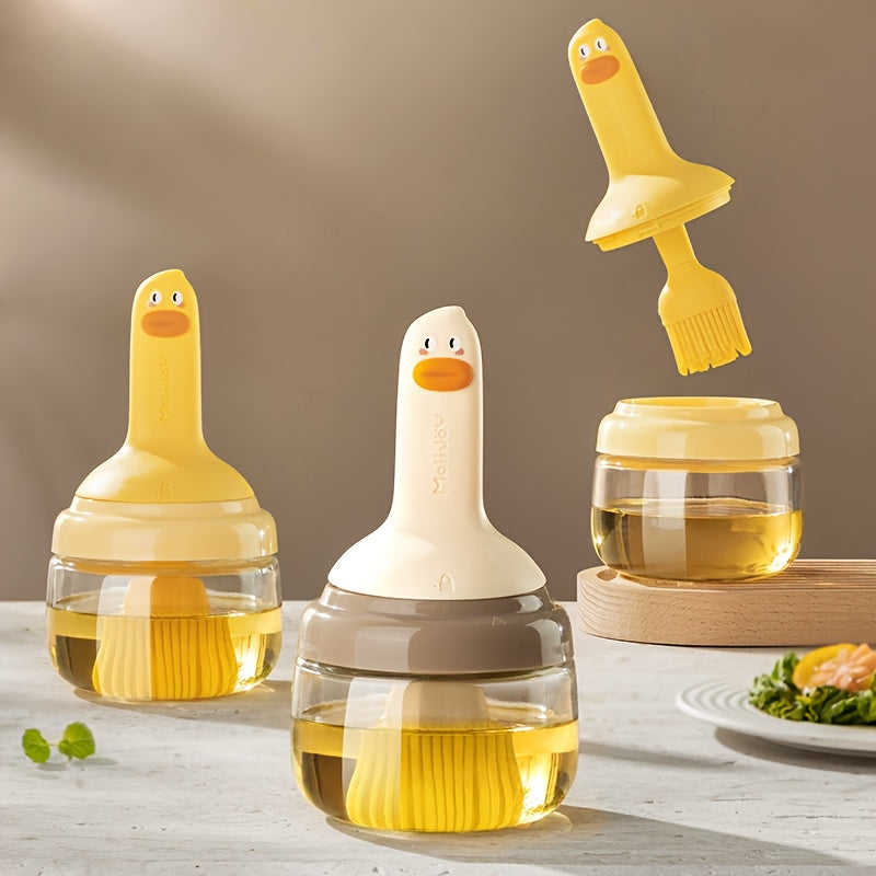 🦆 Silikonska Flašica za Ulje u Obliku Patkice – Sa Ugrađenom Četkicom
