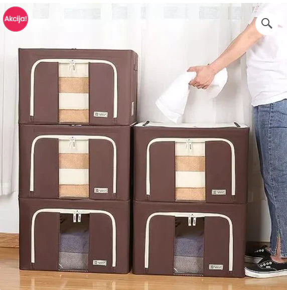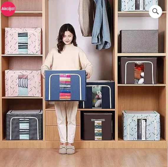 Naša Sklopiva Kutija za Skladištenje ima impozantne dimenzije 50x40x36cm, pružajući vam obilan kapacitet za sve što vam je potrebno. Bez obzira da li su u pitanju jorgani, ćebad, jastuci, bebi odeća, jakne ili igračke za decu, ova kutija zadovoljava sve vaše potrebe za skladištenjem.