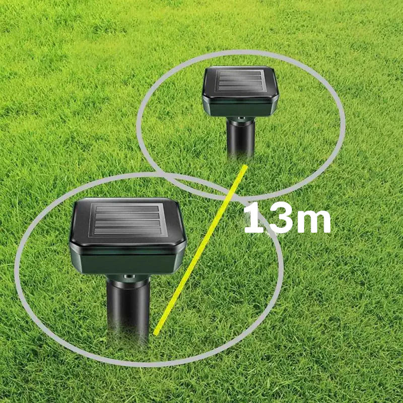 - Emituje niskofrekventne talase koji odbijaju neželjene životinje u krugu od 15m.