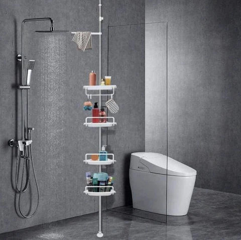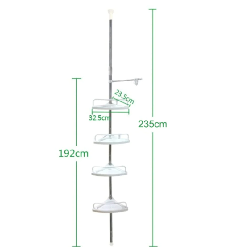 Na čvrstom hromiranom teleskopskom stubu nalaze se 4 police i vešalica, a razmak između njih možete prilagoditi po želji. Svaka polica ima drenažne rupe koje sprečavaju zadržavanje vode i neprijatan miris.