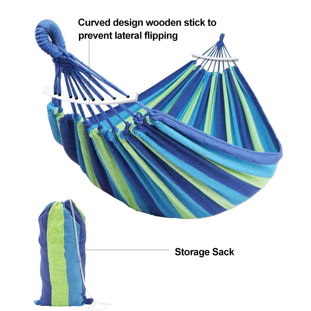 Viseća ležaljka za odmor pored reke, u dvorištu, na balkonu, kampovanju i sličnim mestima. Mnogo je praktična i zauzima vrlo malo mesta kada je spakovana. Izrađena je od debelog pamučnog platna i pletenih kanapa. Izuzetno lako se montira i sklapa.