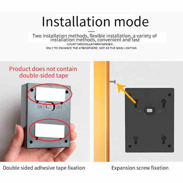 - Jednostavna Instalacija: Bez potrebe za kablom ili dodatnim napajanjem, ova svetiljka se lako montira na zid.